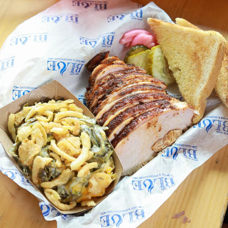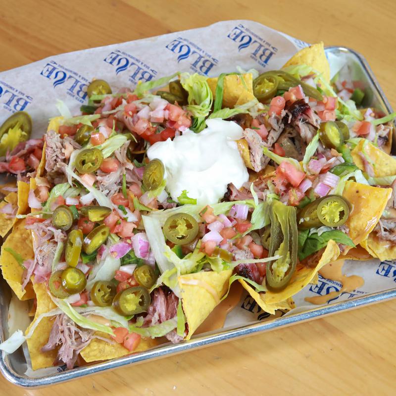 Blue Smokehouse has always been an easy in and out for to go orders or a great place to sit and eat. They always walk around and see if we need anything and take trays/trash away as we finish up. I really enjoy the nachos, corn casserole, chimi, and onion rings. So many things to enjoy.